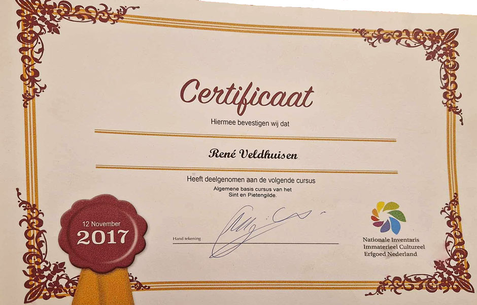 12 november – Het Sint en Pietengilde start met het geven van een basiscursus voor enthousiaste vertolkers waar ze leren hoe je een goede Sint Nicolaas of Zwarte Piet neerzet.