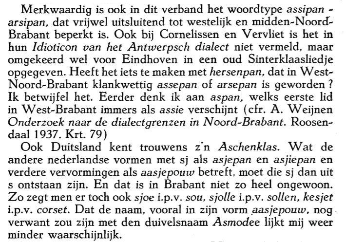 De naam Assipan (of Assiepan) als begeleider van Sint Nicolaas komen we alleen tegen in Noord-Brabant. Over de herkomst van de naam Assipan is veel gespeculeerd. Weijnen in 1940:
