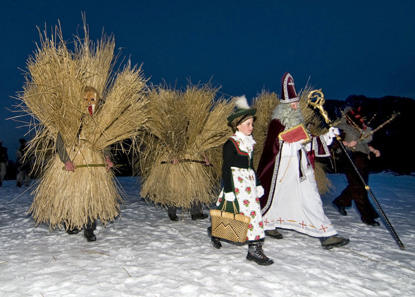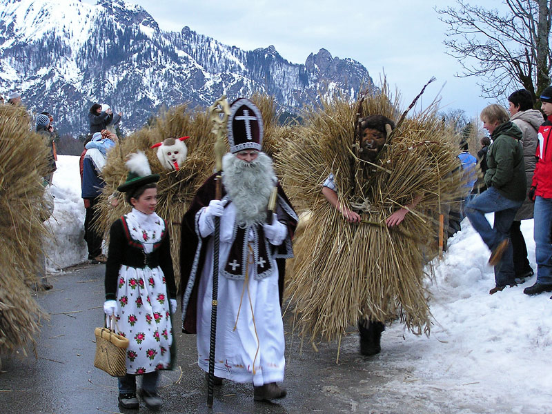 Direct aan de grens met Oostenrijk, vlak naast Salzburg, ligt het Berchtesgadener Land waar het feest van de Heilige Nicolaas naar oud gebruik gevierd wordt. Naast de bekendere Krampus vindt u hier de veel minder bekende Buttnmandl (gehuld in stro of vellen) en de Gankerl als begeleider van Sint Nicolaas.