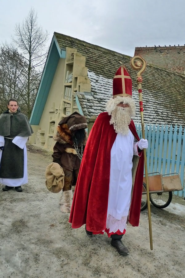 Hans Trapp is de naam van de begeleider van Sint Nicolaas in de Elzas. Soms begeleidt hij ook Christkindl die als een soort Sint Lucia optreedt en de rol van Sint Nicolaas heeft overgenomen toen het feest naar Kerst overging. Maar je ziet ze soms ook naast elkaar. Ook hier diverse vormen van Maskerade.