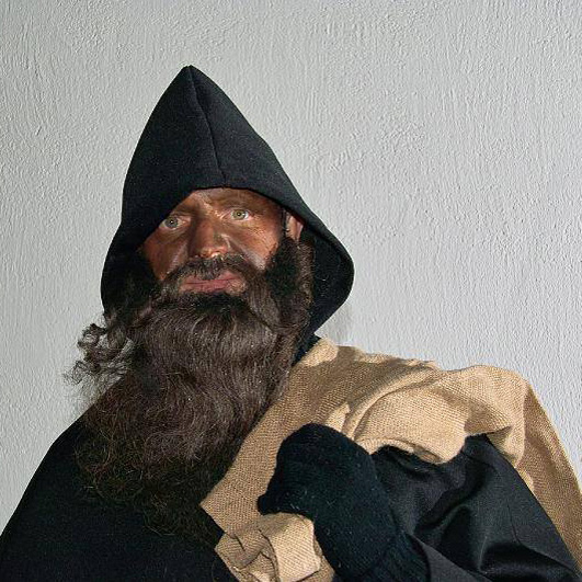 Bij onderstaande Hans Trapp vallen vooral de dierenvellen op. Deze huiden zien we vaker bij begeleiders van Sint Nicolaas.