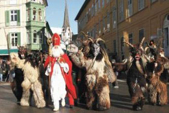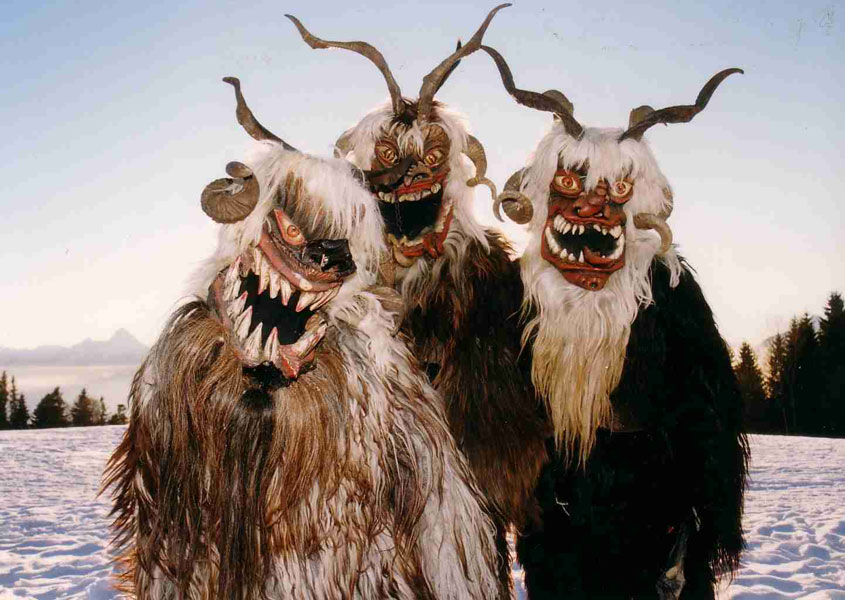 Een Krampus is bekend als begeleider van Sint Nicolaas. De soms erop gelijkende en heel verschillende Perchten opereren over het algemeen zelfstandig.