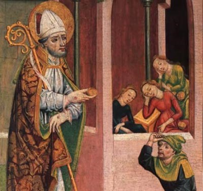 De zoon van een edelman was krijgsgevangen gemaakt door een heidense koning. Hij vertelde de koning over Sint Nicolaas. De koning sprak honend dat Nicolaas de jongen niet kon bevrijden. Hierop verscheen Nicolaas in een glorie van wolken. De jongen werd bevrijd en overgedragen aan zijn vader.[1]