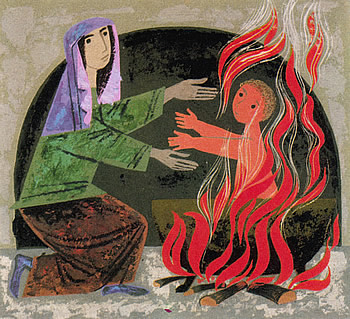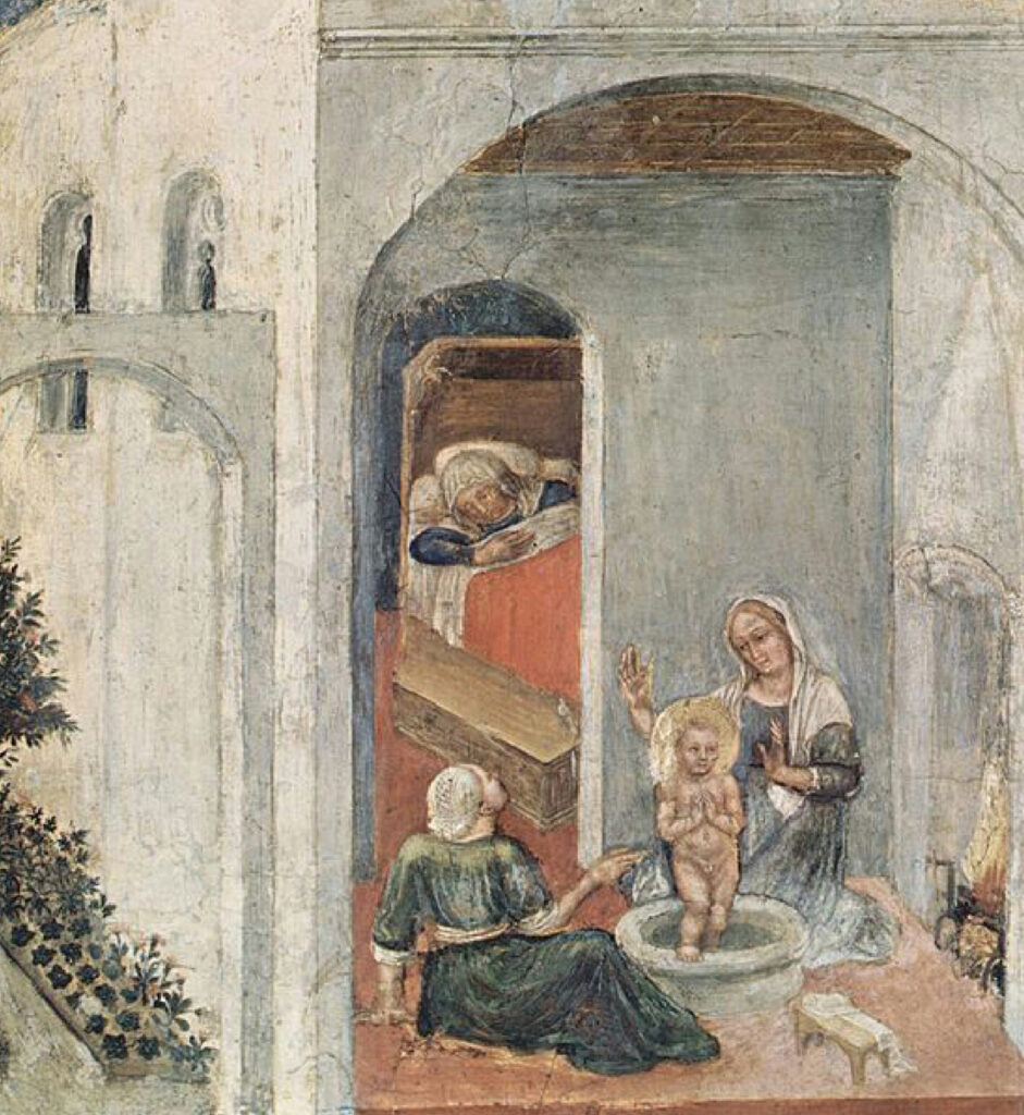 Een moeder was haar kind aan het wassen. Om het water niet snel te laten afkoelen had ze de kuip op het vuur gezet, terwijl ze het kind waste. Toen ze de klok hoorde luiden herinnerde ze zich dat de nieuwe bisschop, Nicolaas, vandaag ingehuldigd zou worden, en daarom haastte ze zich naar de kerk. Opeens herinnerde ze zich dat ze het kind op het vuur had laten staan en rende in paniek terug. Thuisgekomen zag ze dat het kind in het badje zat te spelen. Nicolaas had een wonder verricht; het water was niet gaan koken en het kind had zich niet gebrand.