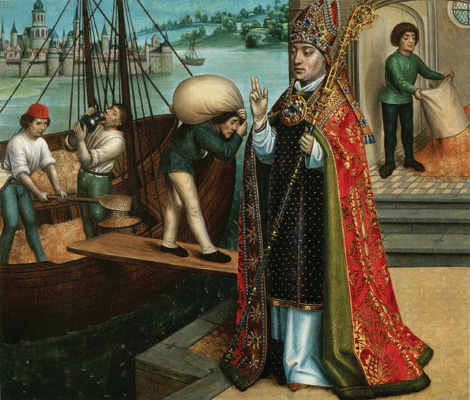 Nicolaas, die inmiddels tot bisschop is gewijd, stopt een à drie schepen om koren af te staan voor het hongerlijdende Myra, waarbij hij het graan zou laten verdelen en zelfs gebruiken om te zaaien. De handelaren zijn bang voor de gevolgen omdat er dan te weinig koren zal zijn voor de keizer of voor ‘Alexandrië’. Toen de lading werd nagekeken bij aankomst, was er echter niets verdwenen.