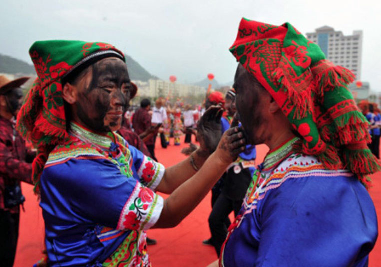Een overzicht van landen per werelddeel waar zwart schminken voorkomt.