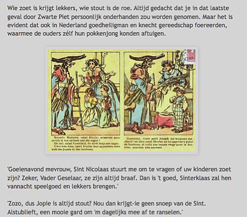 ‘Zozo, dus Jopie is altijd stout? Nou dan krijgt-ie geen snoep van de Sint. Alstublieft, een mooie gard om ‘m dagelijks mee af te ranselen.’